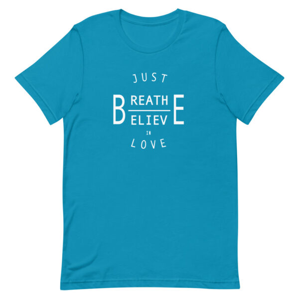 The Awake & Aware Just Be Tee – This multi-message tee says a mouthful; Just Be, Just Breathe, Just Believe, Just Be in Love, Just Breathe in Love, Just Believe In Love . It feels soft and lightweight, with the right amount of stretch. It’s comfortable and flattering for both men and women.
